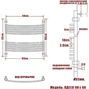 Полотенцесушитель Ника ARC ЛД (Г3) 60/60 (-) УЦ информация: