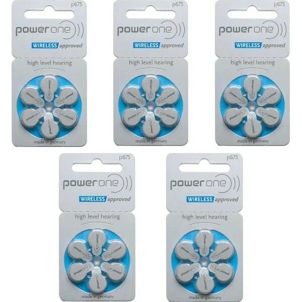 Батарейки для слуховых аппаратов Power One тип 675 5 блистеров = 30 батареек