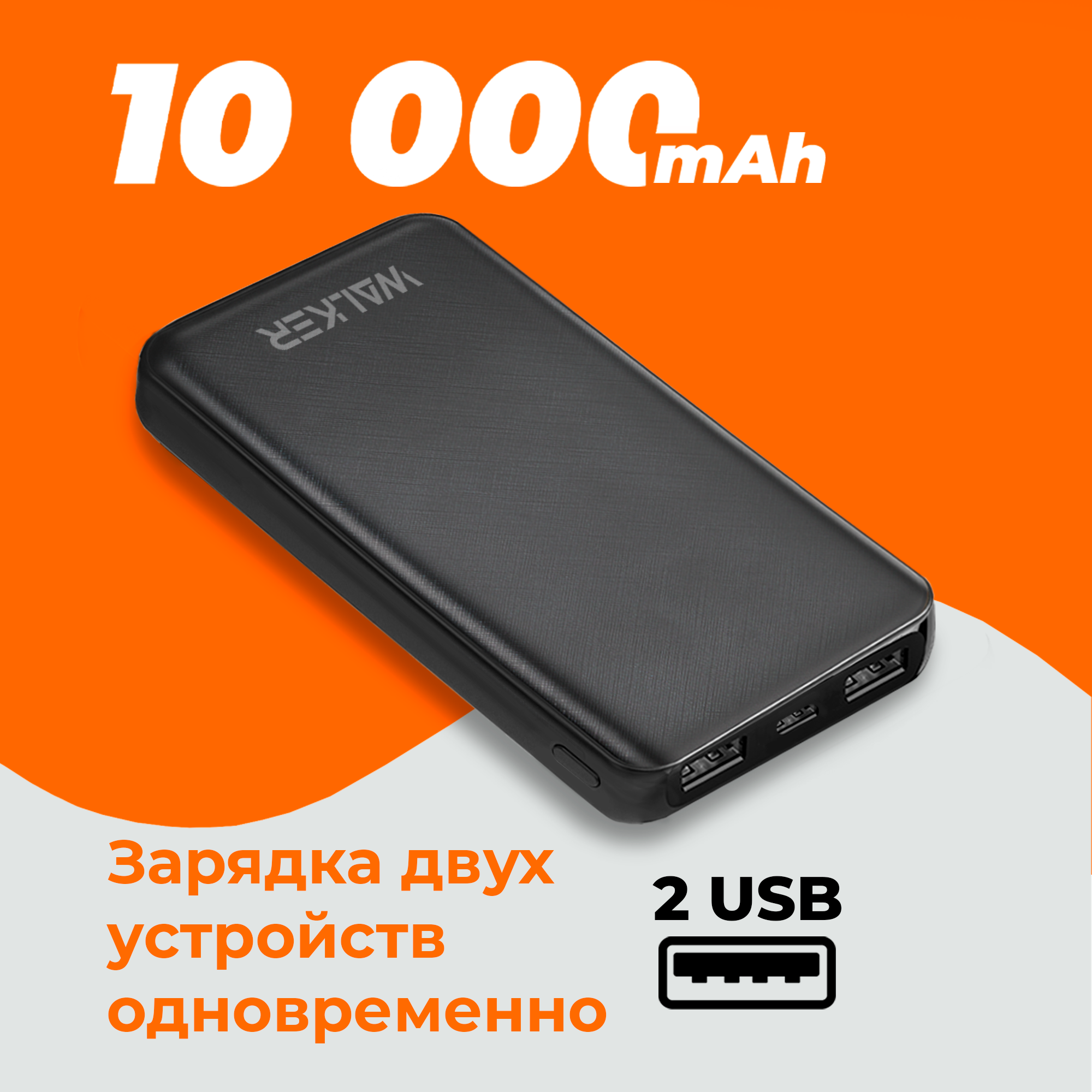 10 цен на Повербанк 10000 mAh, WALKER, WB-410, 2.4 А, черный // powerbank, пауэр банк, power bank, павербанк, повербанк xiaomi, повербанк для айфона