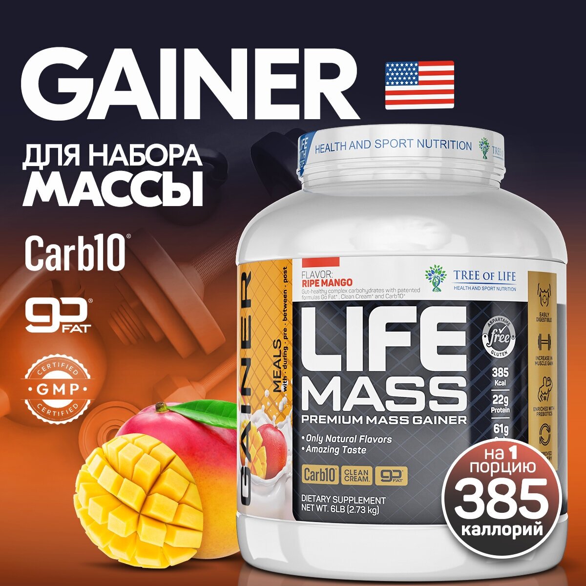 Комплекс Гейнер Tree of life Mass GAINER 6LB вкус Манго + Креатин моногидрат 150 гр. в подарок 4 372 ₽