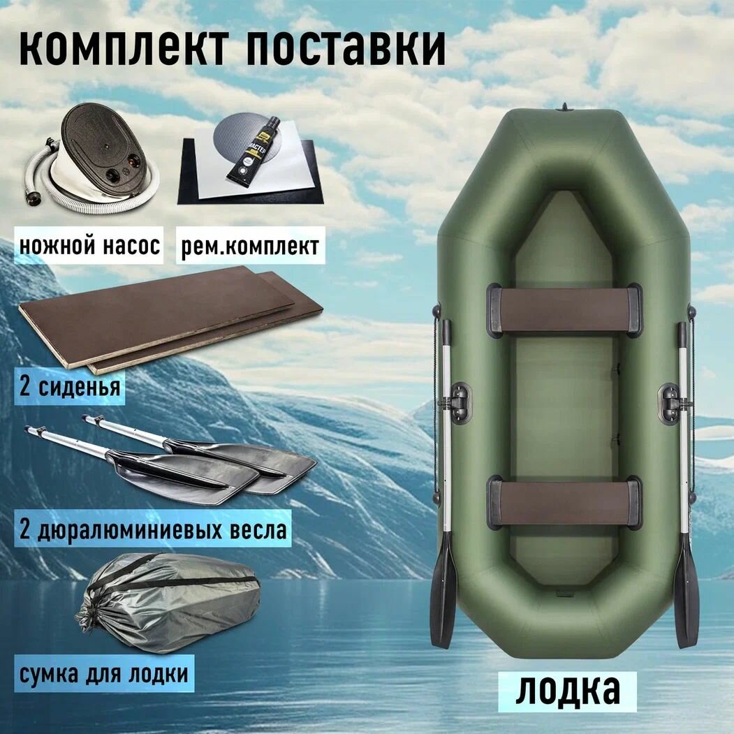Отзывы на Лодка надувная для рыбалки Аква Оптима 260, ПВХ, гребная, с веслами, цвет зеленый