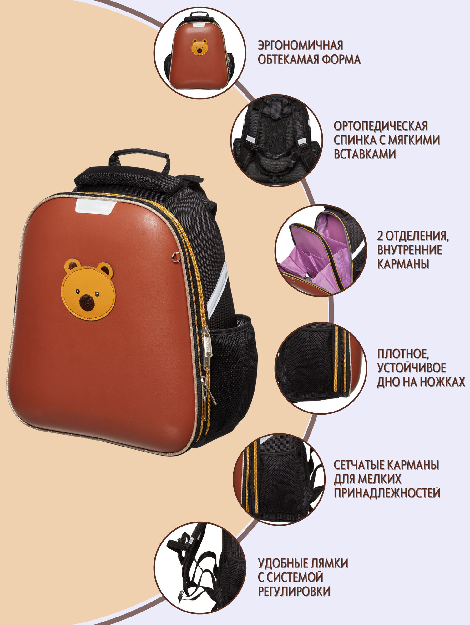 Ранец школьный (рюкзак) №1 School Basic Fashion бежево-черный, 2 отделения, эргономическая спинка 6 833 ₽