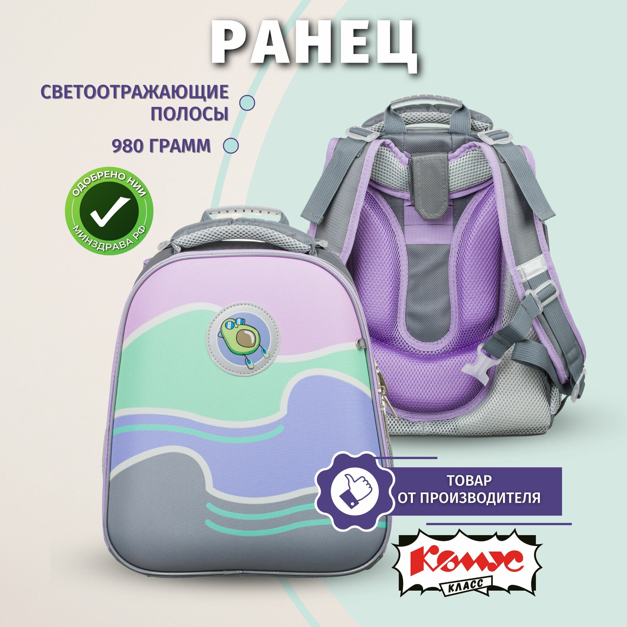 Отзывы на Ранец школьный Комус Basic Avocado cruise, анатомический, 2 отделения, 4 кармана