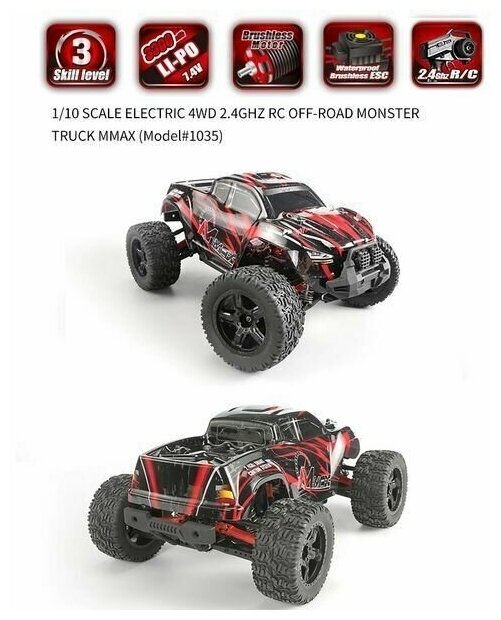 Радиоуправляемый монстр Remo Hobby MMAX Brushless UPGRADE 4WD 2.4G 1/10 RTR-RH1035UPG - Красный 25 360 ₽