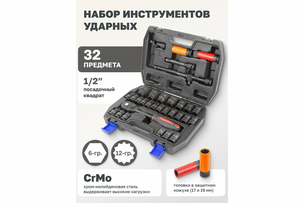 Отзывы на Набор ударных головок ROCKFORCE RF-4323-5MPB, 32 предмета, 1/2", Cr-Mo, кейс