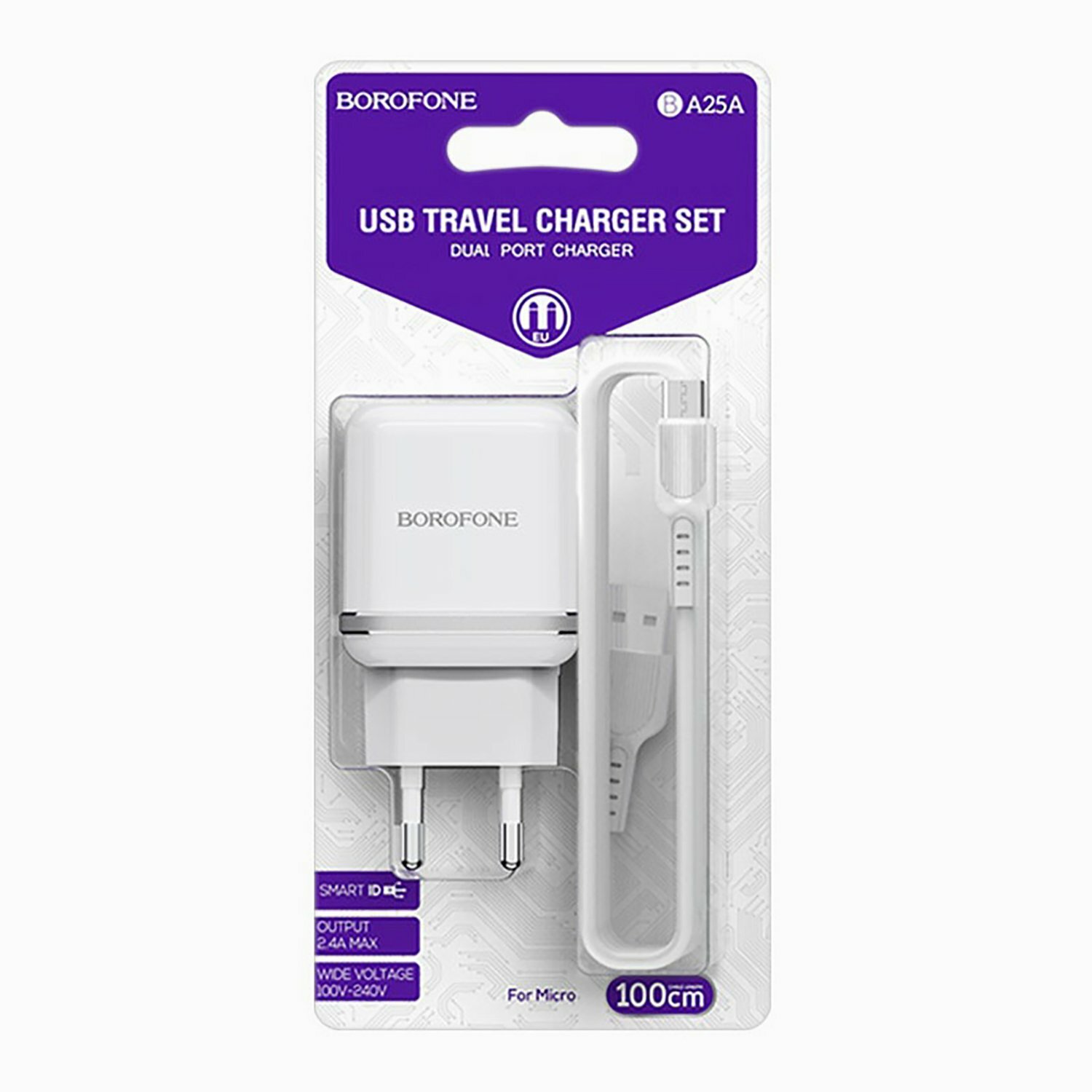 Сетевое зарядное устройство USB Borofone BA25A (2.4A/кабель MicroUSB) <белый> информация: