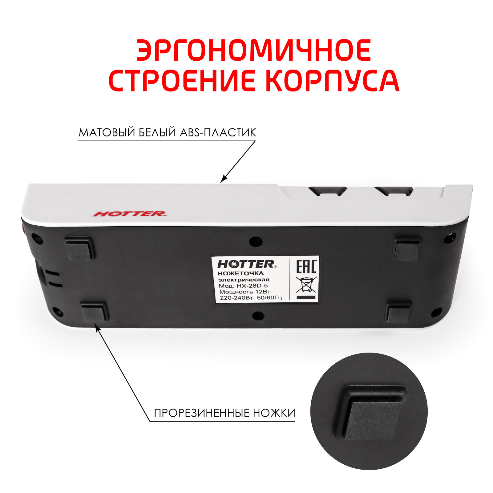Точилка электрическая HOTTER HX-28D-5 для всех видов ножей, включая керамические и из дамасской стали, белая 2 690 ₽