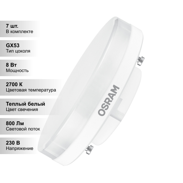 (7 шт.) Светодиодная лампочка OSRAM 8Вт 230В 2700К GX53 информация:
