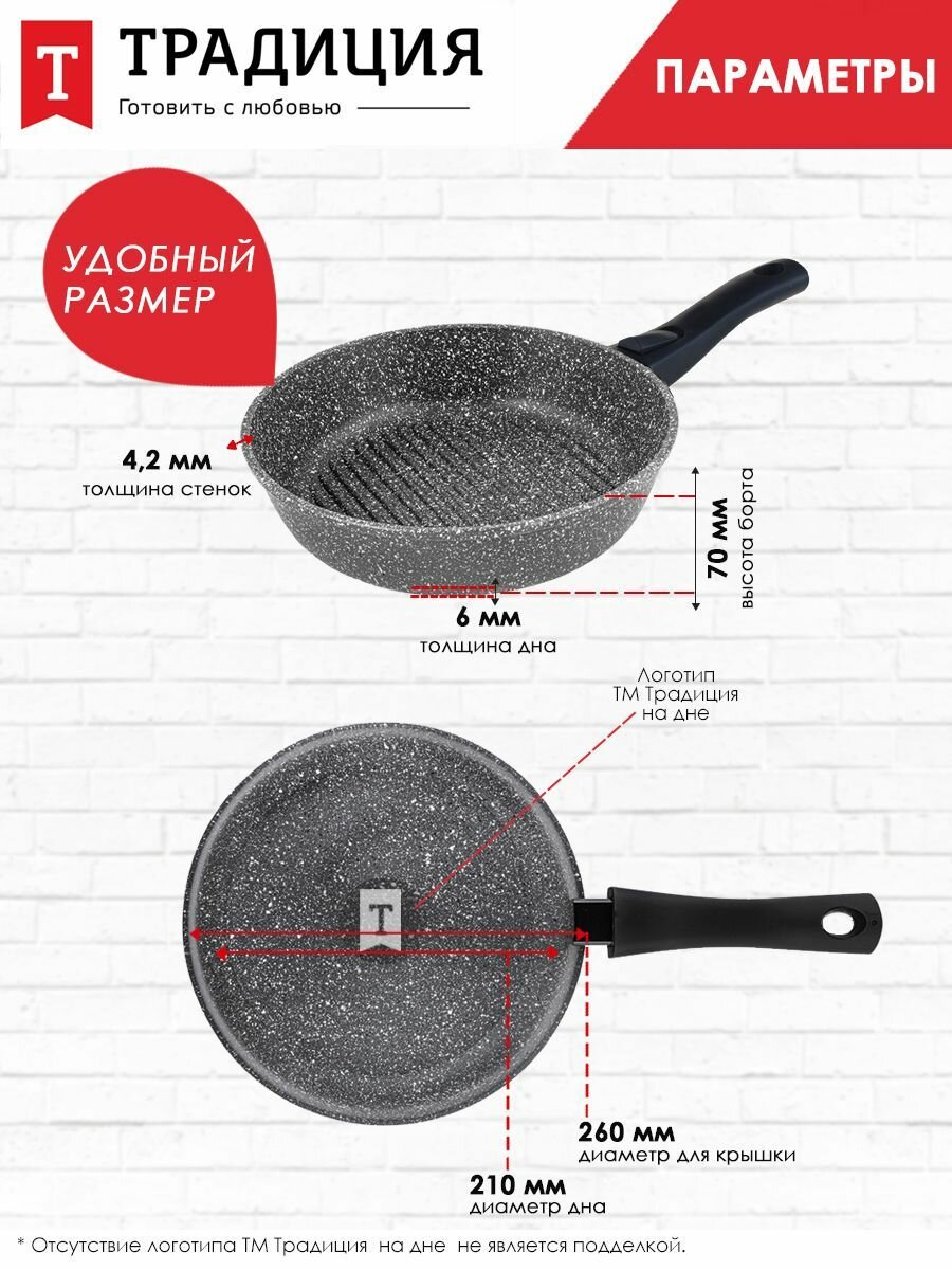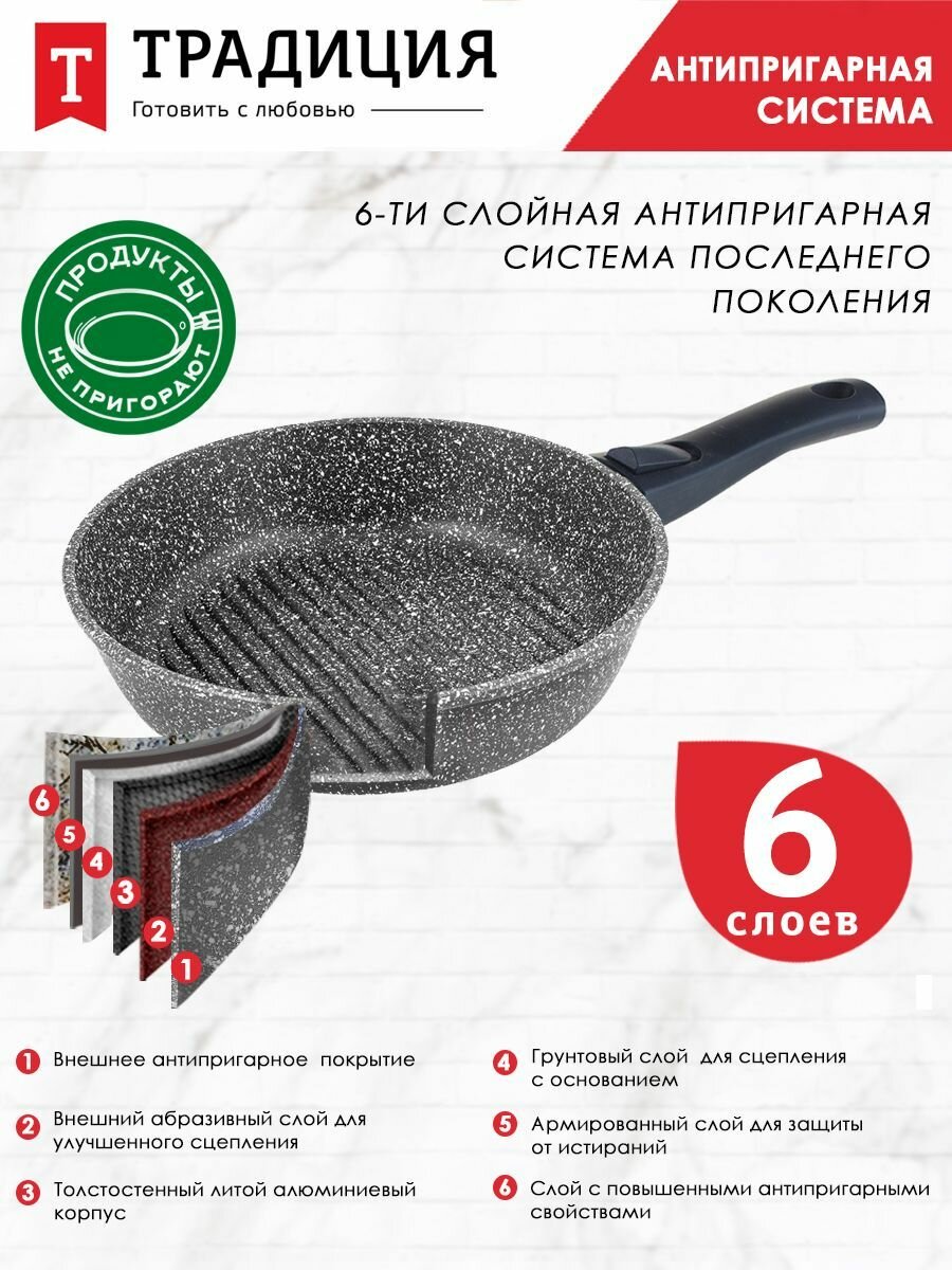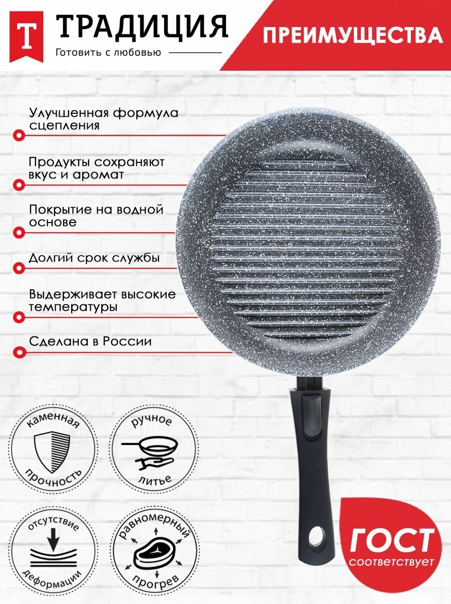 Сковорода-гриль антипригарная литая 26см со съемной ручкой Мрамор ТМ Традиция готовить с любовью информация: