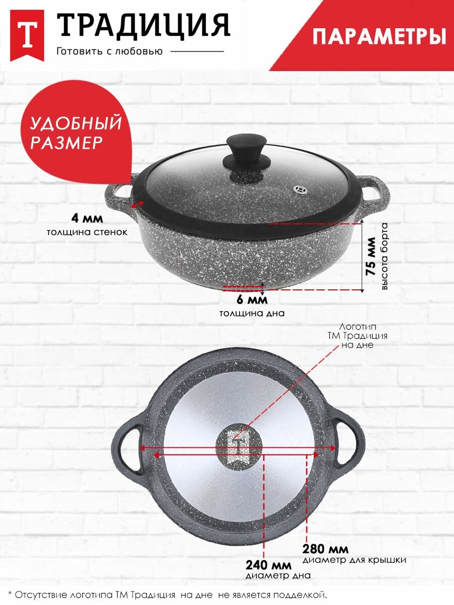 Жаровня Традиция Мрамор ТМ9287 28см силиконовая крышка информация: