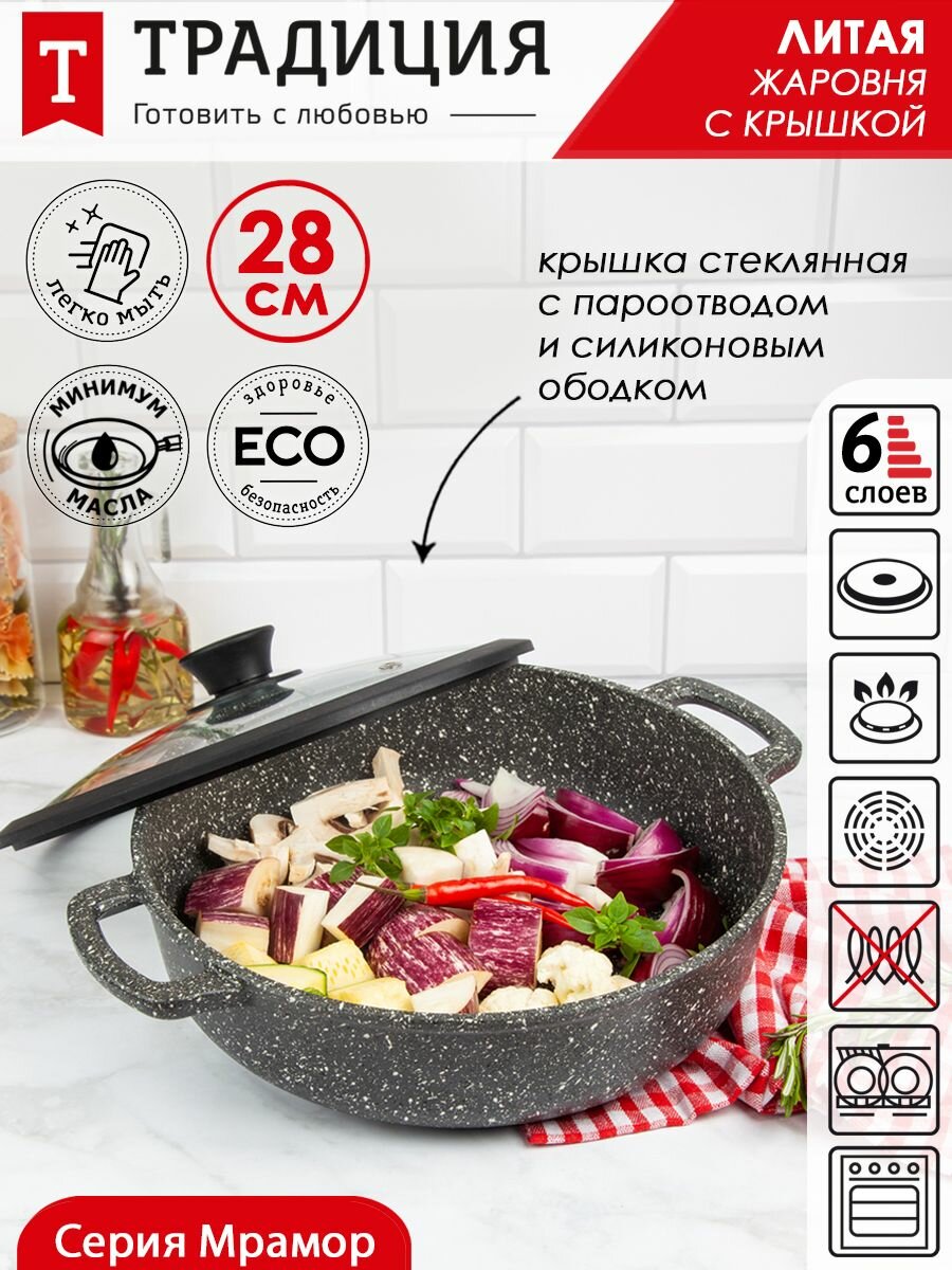 10 цен на Жаровня Традиция Мрамор ТМ9287 28см силиконовая крышка