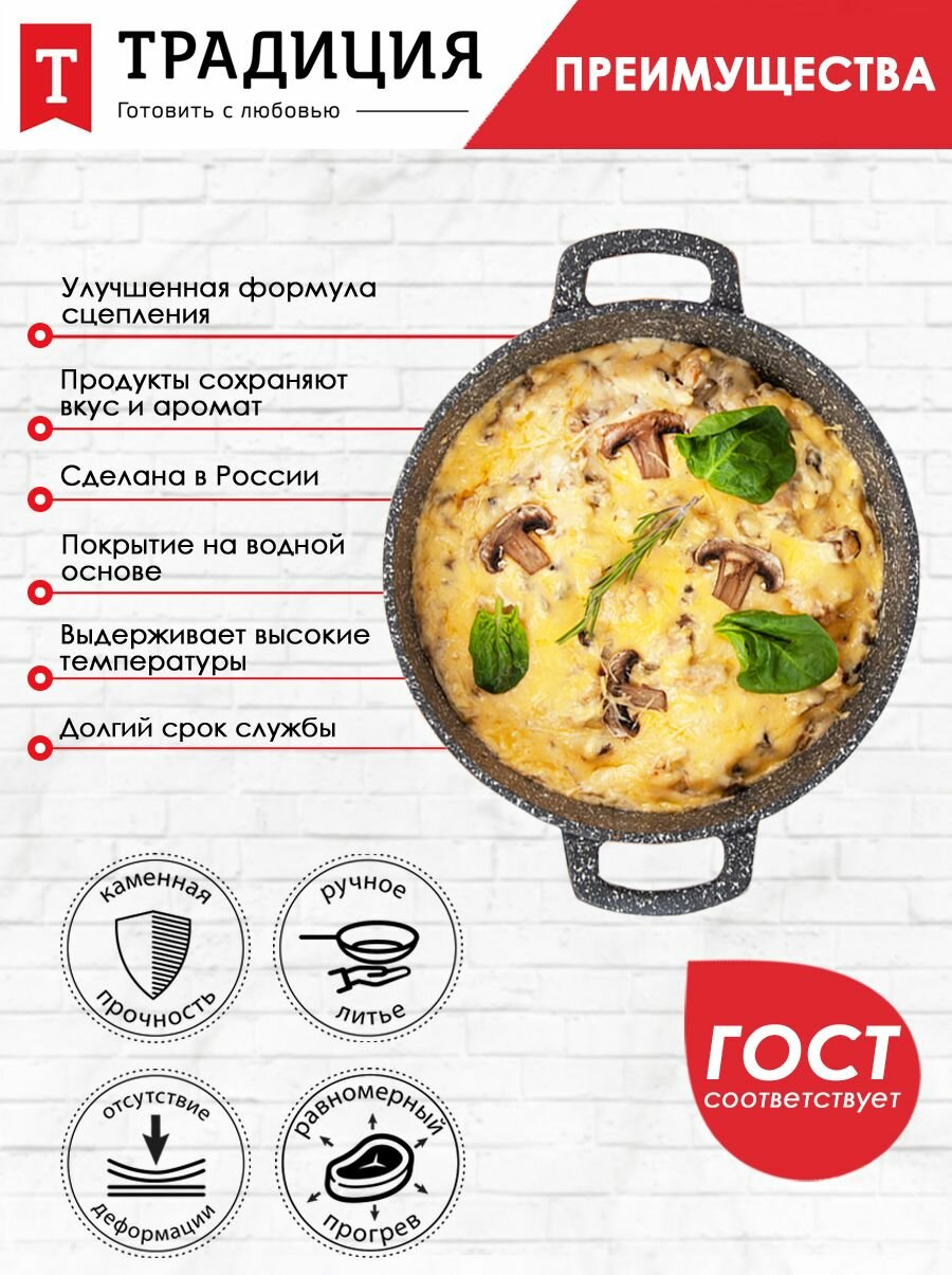Сковорода Традиция Доломит 24х6см антипригар.литой алюминий, ручка съемная 5 117 ₽