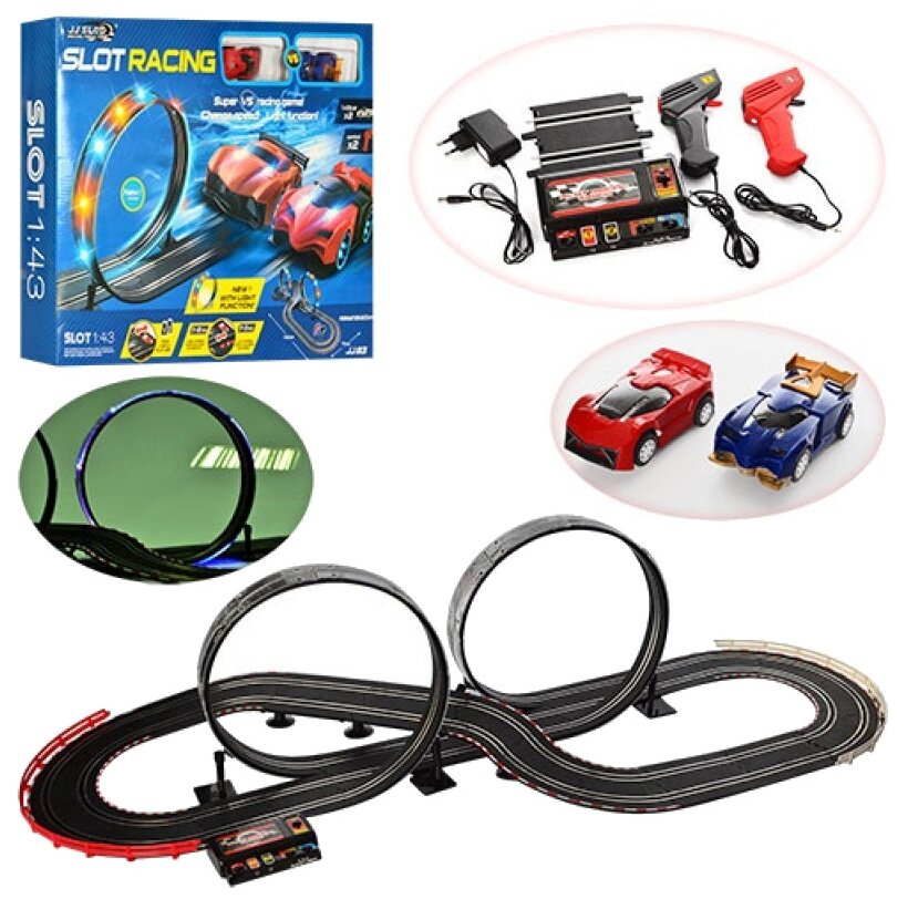 | Комплектация | детали для сборки автотрека, 2 машинки, 2 пульта управления, сетевой адаптер |