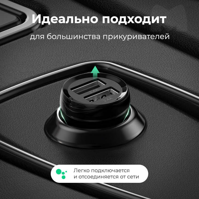 Автомобильное зарядное устройство 24Вт UGREEN ED018 / 2xUSB-A 2.4A / Мини размер / цвет черный (50875) информация: