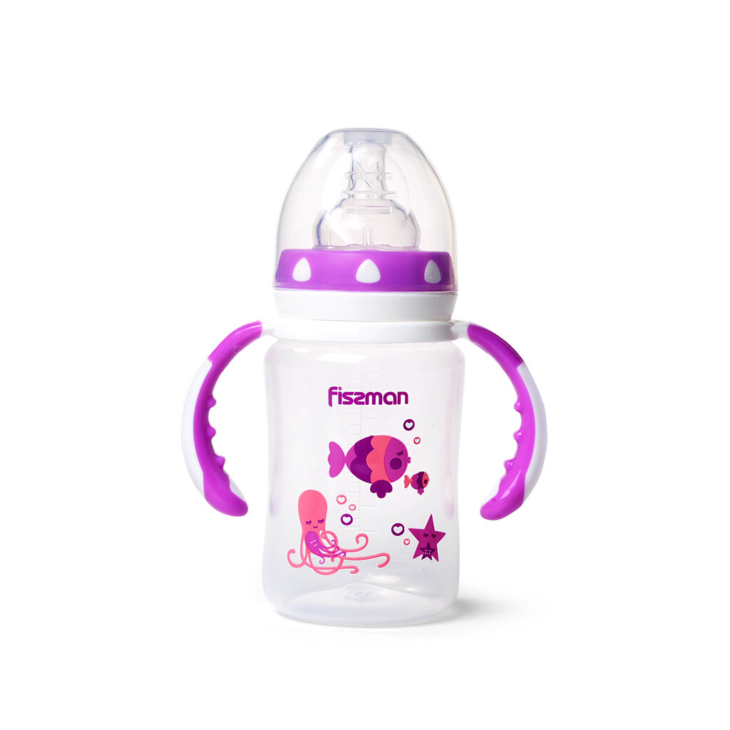 6895 FISSMAN Бутылочка для кормления с широким горлышком и ручками 240 мл, цвет фиолетовый (пластик)