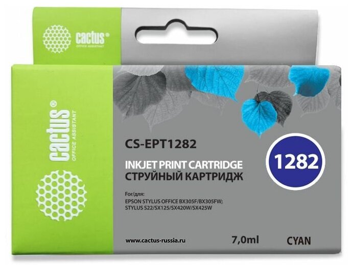 Картридж струйный Cactus CS-EPT1282 T1282 голубой (7мл) для Epson Stylus S22/S125/SX420/SX425/Office BX305