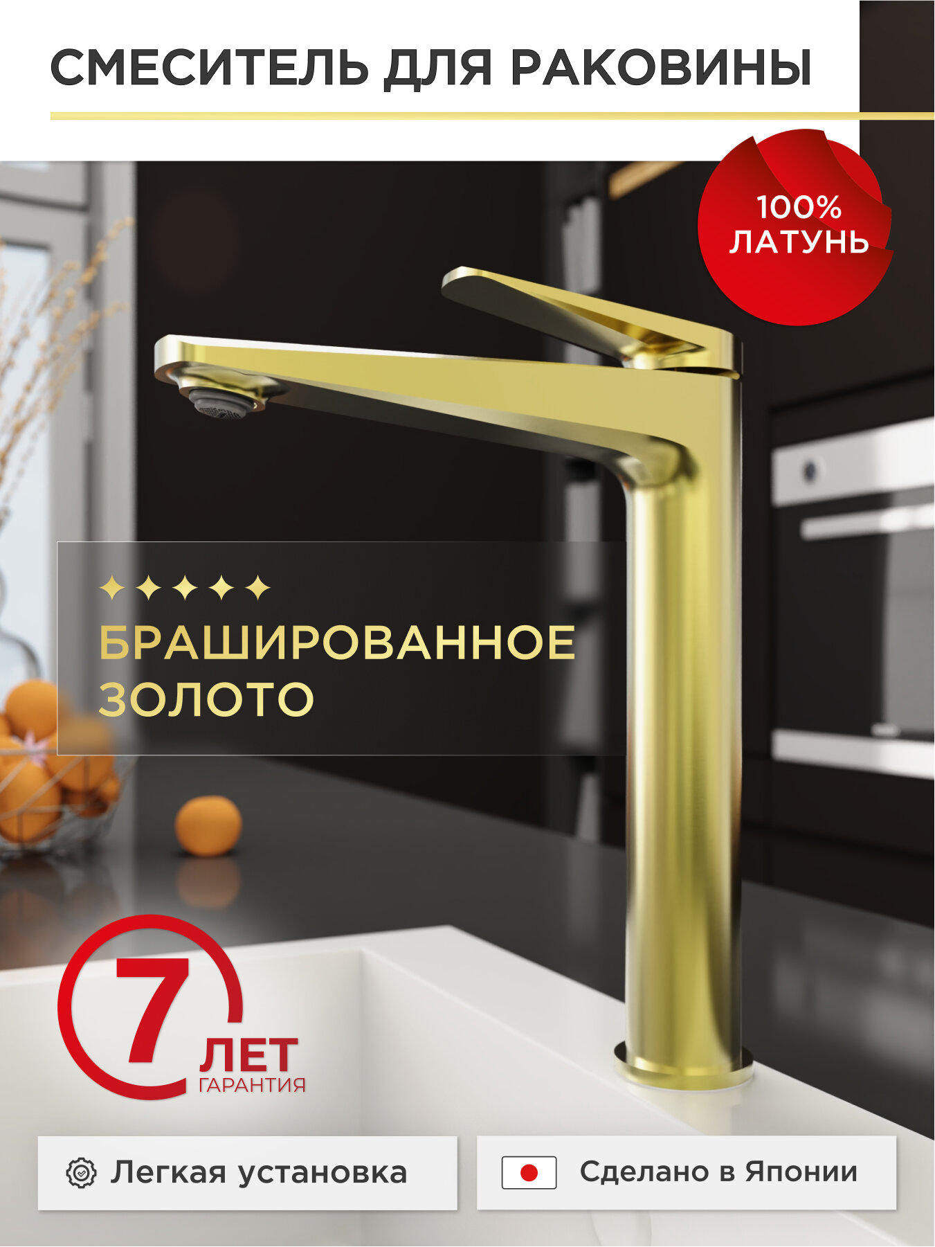 Отзывы на Смеситель для раковины с высоким изливом TOKITO TOK-KIN-1012 серия KIN, латунный, золотой