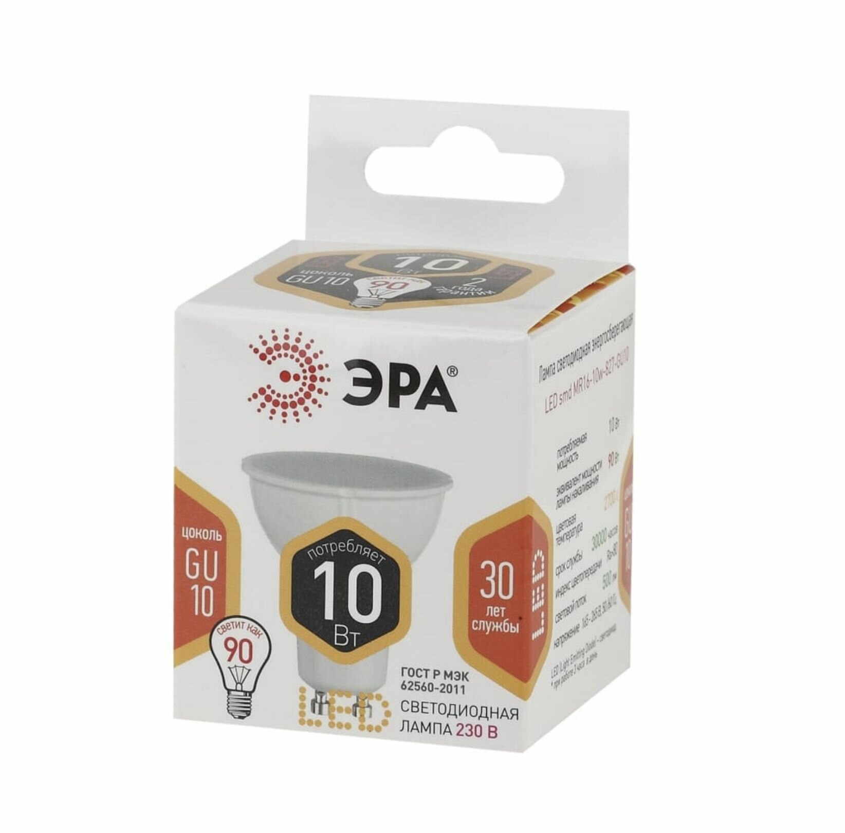(1 шт.) Светодиодная лампочка ЭРА MR16 10Вт 170-265В 2700К GU10 информация: