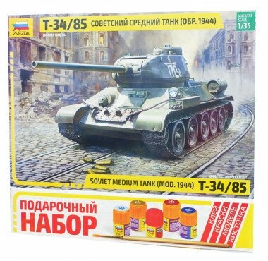 10 цен на Сборная модель Звезда Советский средний танк Т-34/85, образца 1944 г., 1/35, подарочный набор 3687ПН