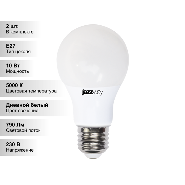 (2 шт.) Светодиодная лампочка Jazzway A60 10Вт 230В 5000K E27 информация: