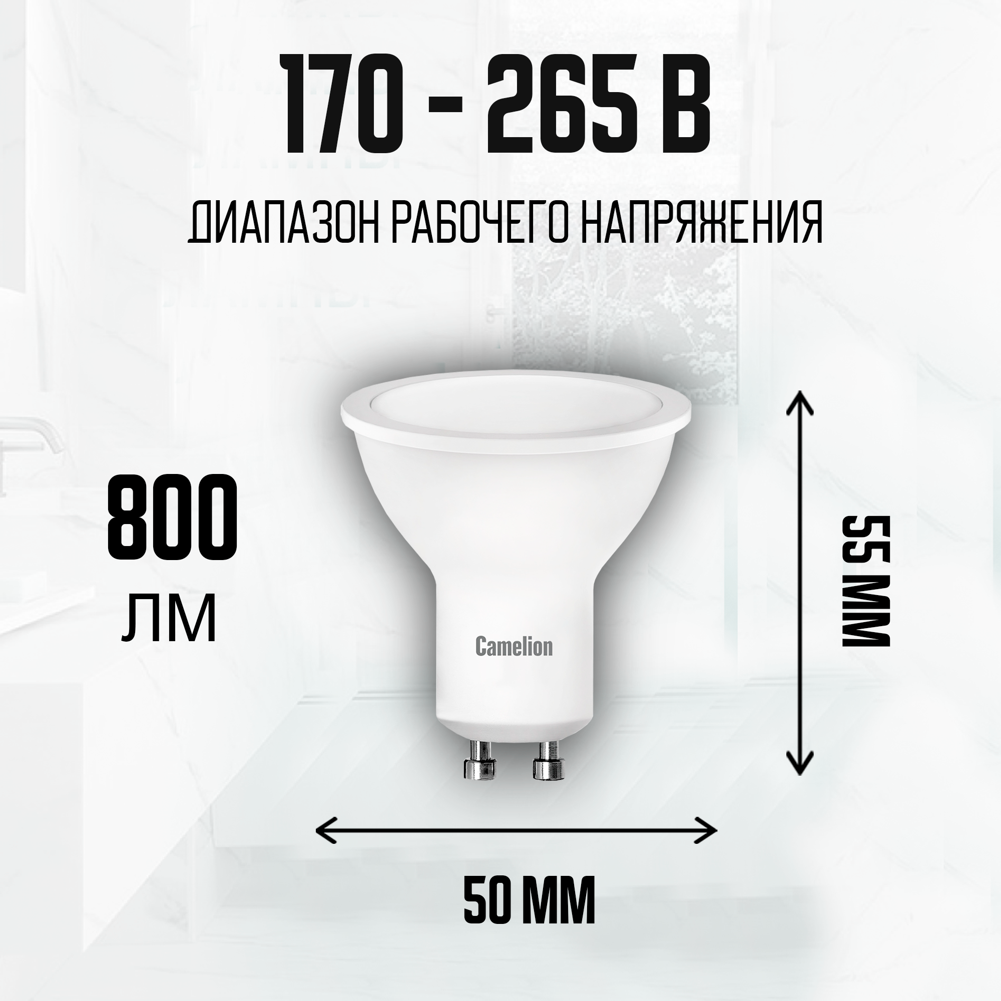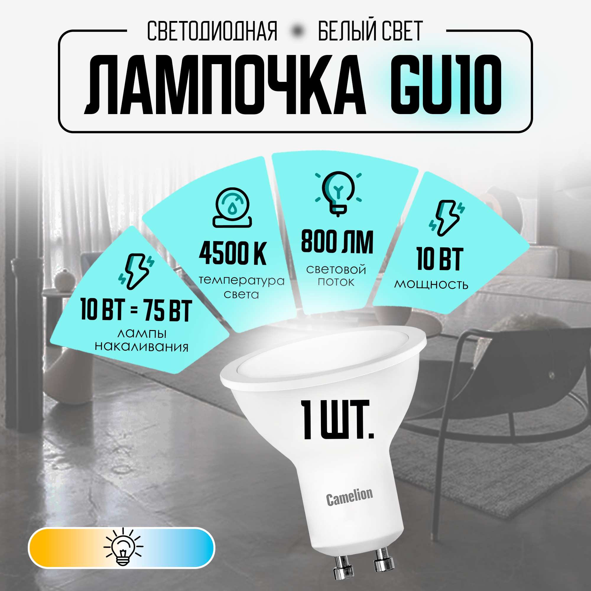 10 цен на Лампа CAMELION GU10 10Вт 4500K 800Лм 220В LED10-GU10/845 13683, светодиодная, нейтральный белый