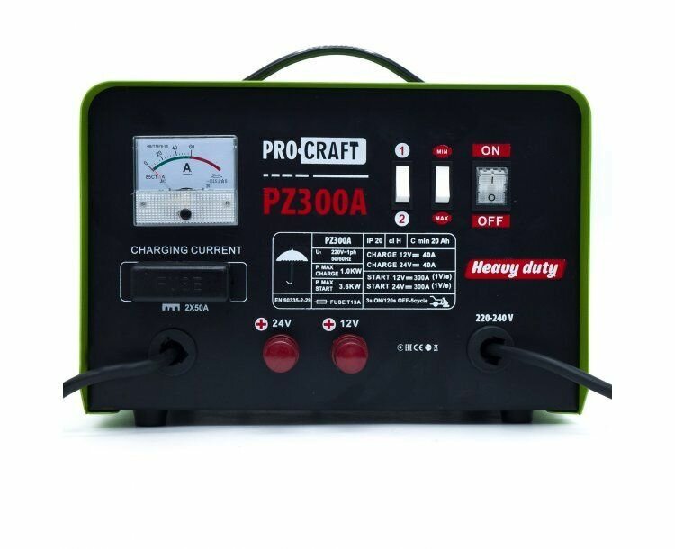 Пуско-зарядное устройство Proсraft PZ 300A, 1000Вт, 50А информация: