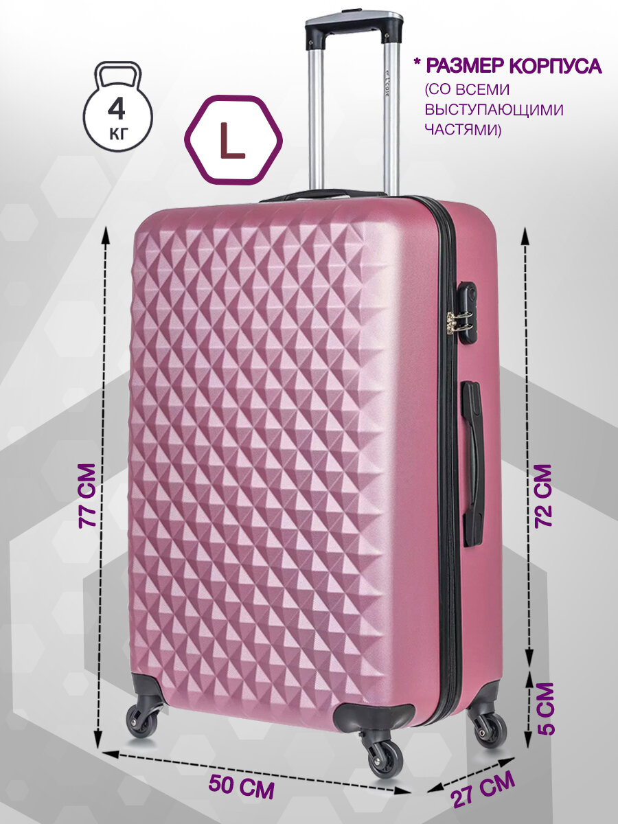 Чемодан на колесах L большой, розовый - Чемодан ABS - пластик, семейный Lcase информация: