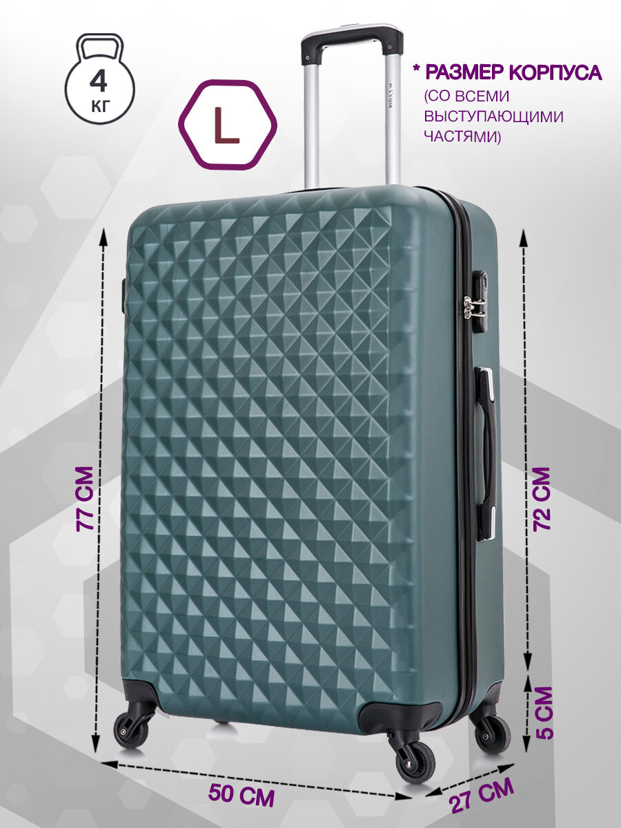 Чемодан на колесах L большой, зеленый - Чемодан ABS - пластик, семейный Lcase информация: