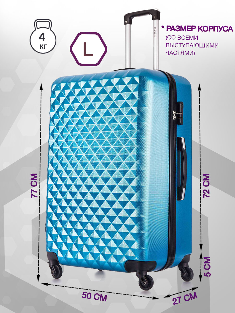 Чемодан на колесах L большой, голубой - Чемодан ABS - пластик, семейный Lcase информация: