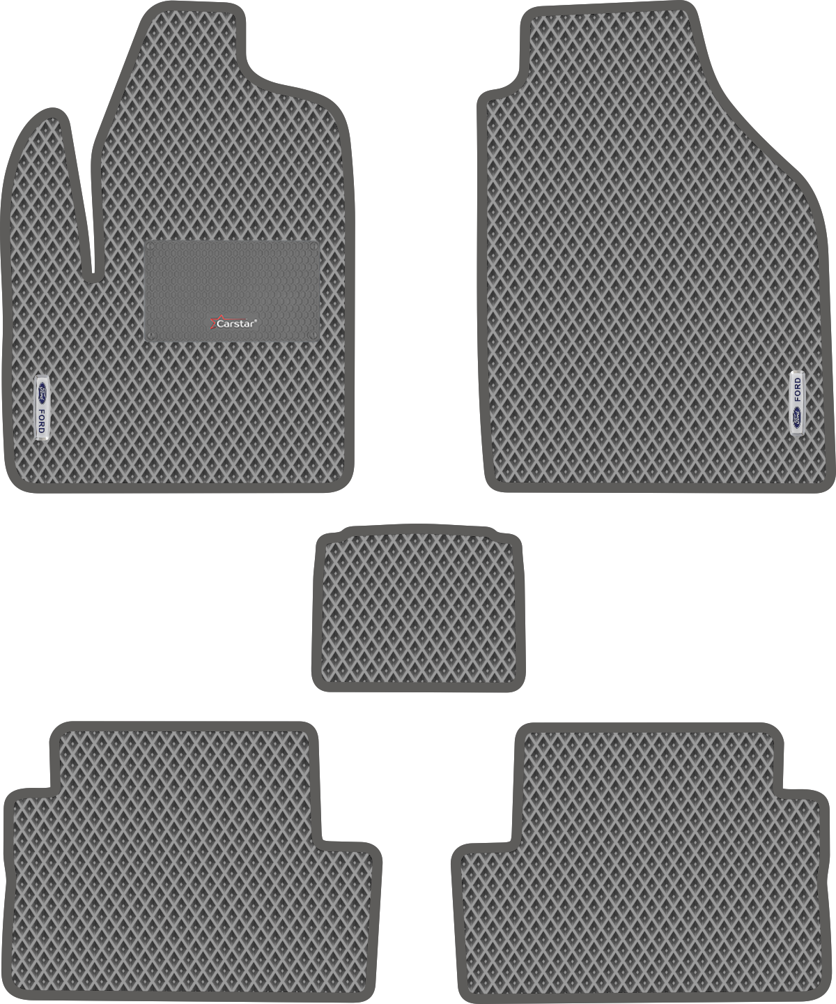 Отзывы на Автомобильные коврики EVA для Ford Transit Connect I (2002-2013), с каучуковым подпятником и 2 эмблемами Ford, серые с серым кантом, ячейка - ромб
