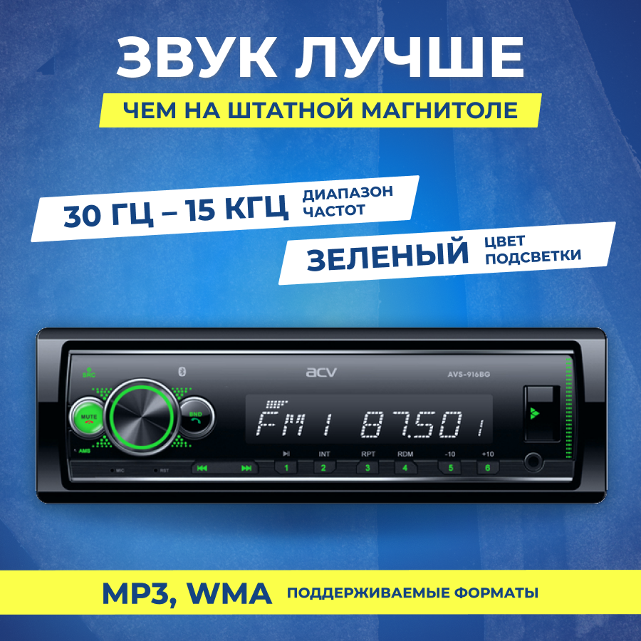 10 цен на Магнитола автомобильная 1DIN, ACV AVS916BG (1 шт.)