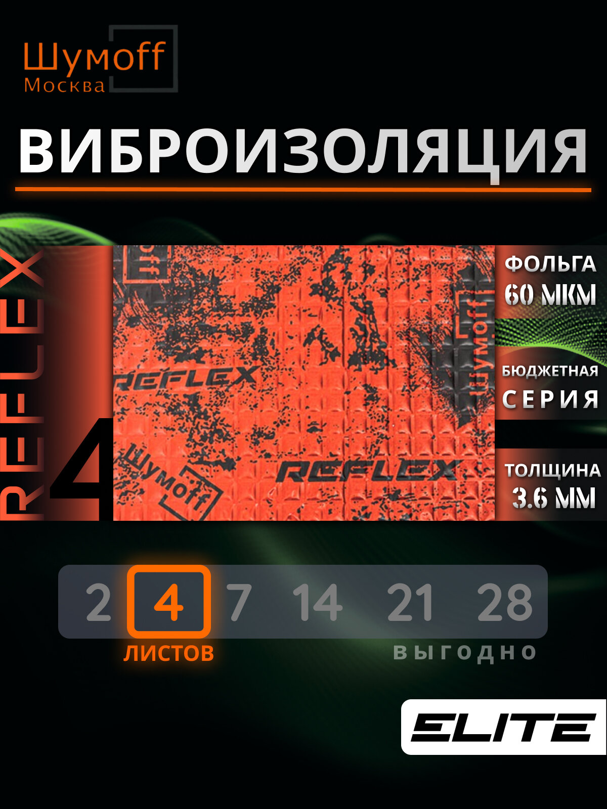 Виброизоляция Шумофф Reflex 4 (3.6 мм) 14 листов