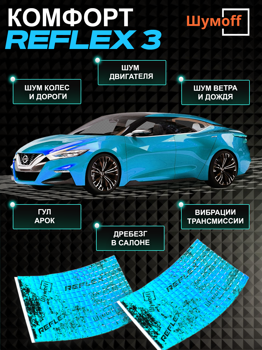 Мы выбрали 10 лучших цен на Виброизоляция Шумофф Рефлекс 3 мм (2,7 мм) - 20 листов. Шумоизоляция для автомобиля Шумоff Reflex 3. Перед тем как купить Виброизоляция Шумофф Рефлекс 3 мм (2,7 мм) - 20 листов. Шумоизоляция для автомобиля Шумоff Reflex 3 посмотрите найденные предложения из Яндекс Маркета и других сайтов на основе XML фидов.