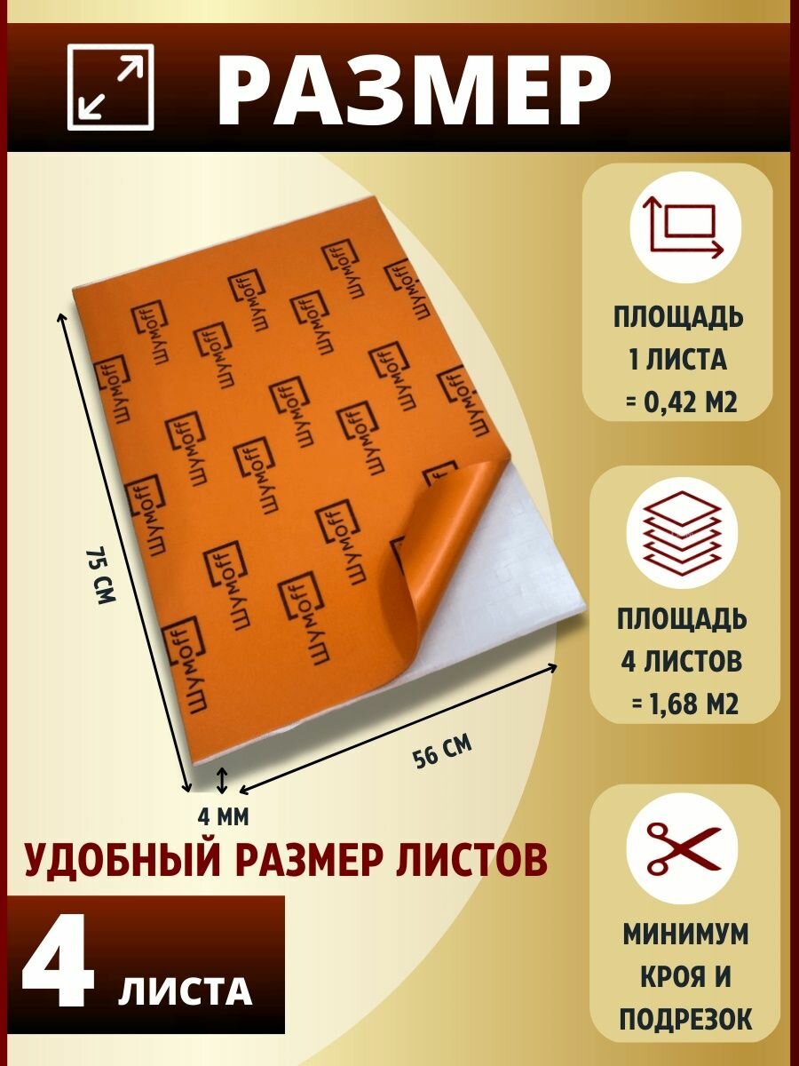 Шумоизоляция для автомобиля Шумофф П4В 4 мм - 4 листа. Теплоизоляция авто, звукоизоляция в машину, шумка информация: