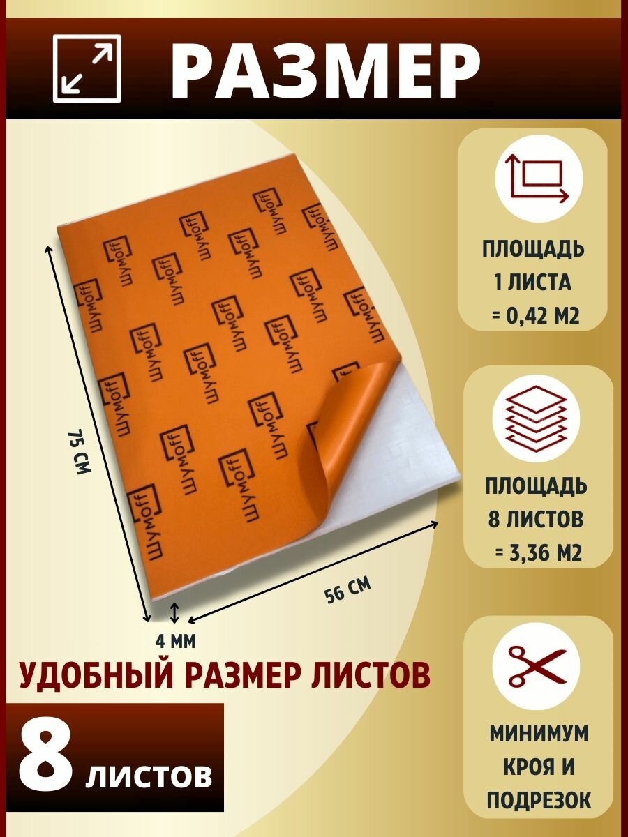 Шумоизоляция для автомобиля Шумофф П4В 4 мм - 8 листов. Теплоизоляция авто, звукоизоляция в машину, шумка информация:
