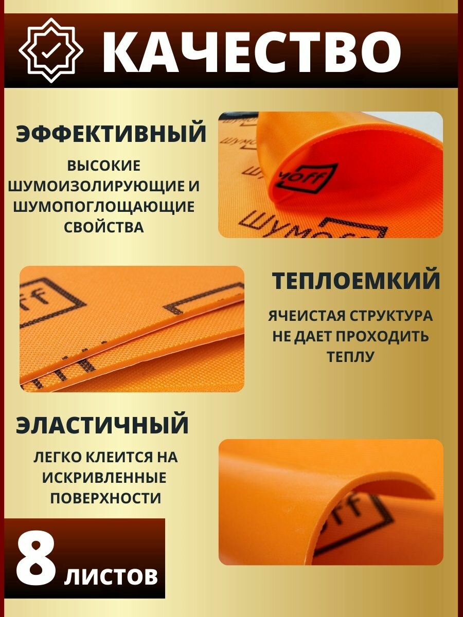 Виброизоляция Шумоff M3 / Шумоизоляция для автомобиля / квартиры / дачи (8 листов / 0,8кв.м)