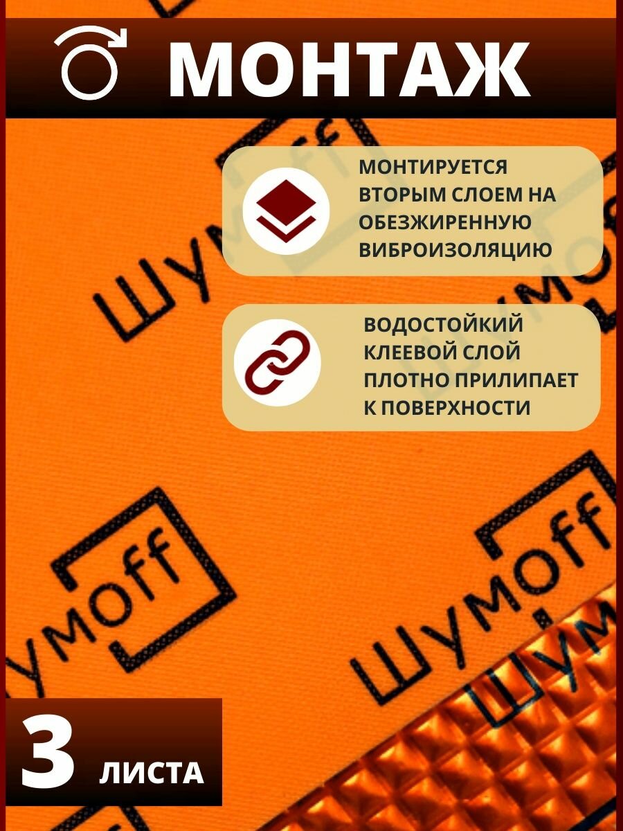 Шумоизоляция для автомобиля Шумофф П4В 4 мм - 3 листа. Теплоизоляция авто, звукоизоляция в машину, шумка информация: