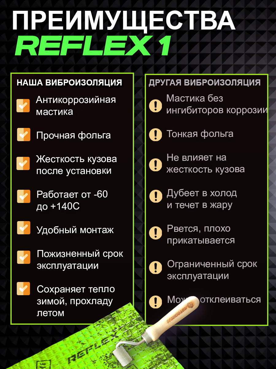 Отзывы на Виброизоляция авто Шумофф Рефлекс 1 - 30 листов + ролик прикаточный. Шумоизоляция для автомобиля, шумка в авто, вибропласт, вибродемпфер. Шумоизоляция для дверей, крыши, потолка, арок, пола, багажника, канализационных труб, стояка, ванны, раковины