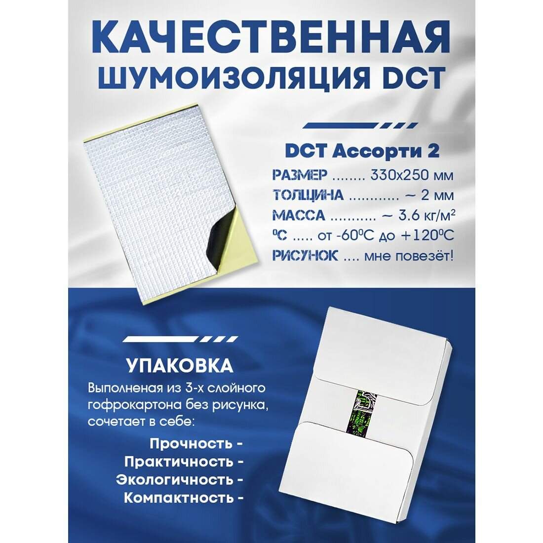 Шумоизоляция для автомобиля DreamCar Ассорти 2мм, 5 листов 330*250мм, Вибра для тюнинга салона пола и дверей машины, комплект звукоизоляции информация: