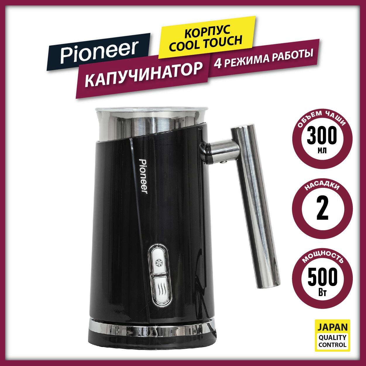 Капучинатор Pioneer с объемом чаши 300 мл и корпусом COOL TOUCH с двойными стенками, антипригарное покрытие, 4 режима работы, 2 насадки, 500 Вт