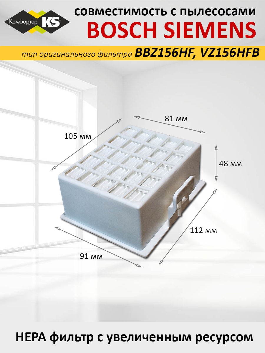 HEPA фильтр Komforter HBS-07 тип BBZ156HF для пылесоса Bosch, Siemens 690 ₽