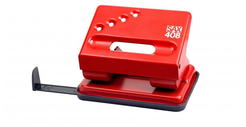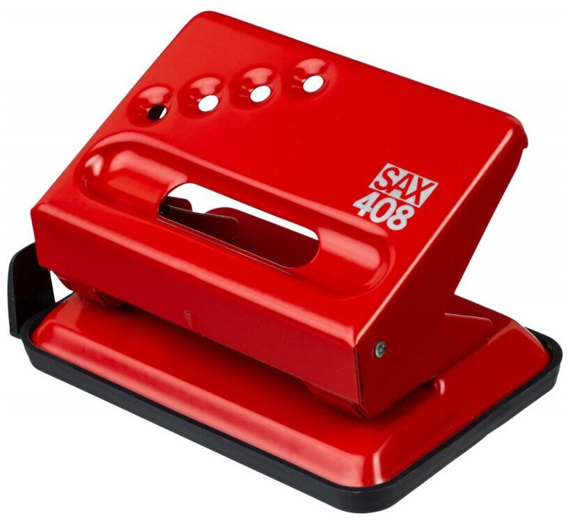 Дырокол Sax 408, до 30 листов, красный линейка