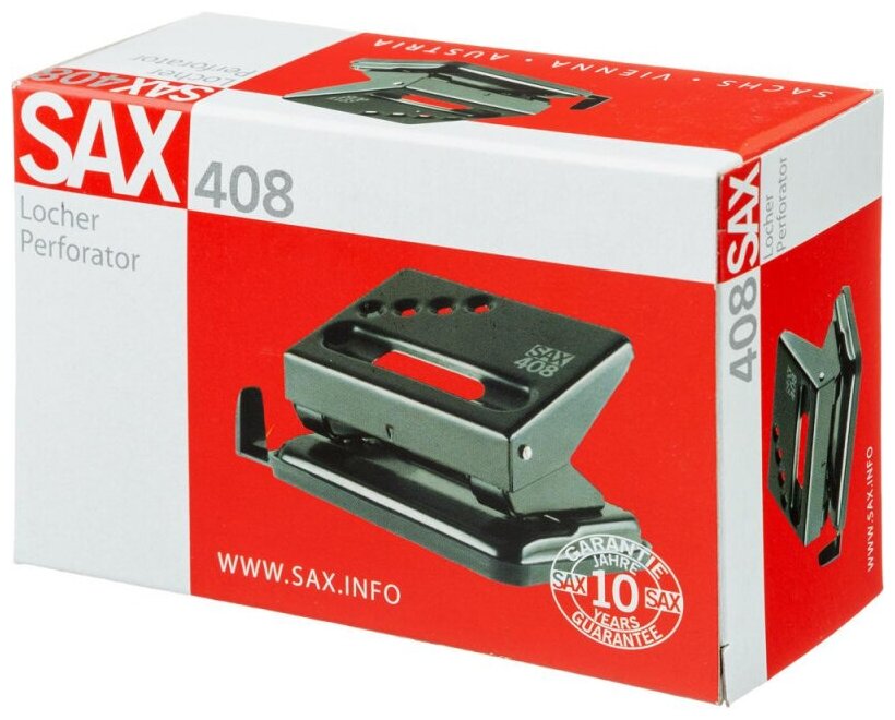 Дырокол Sax 408, 30 листов, с линейкой, красный