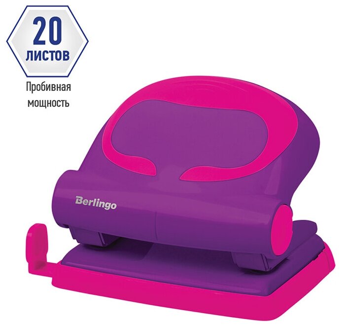 Отзывы на Комплект 10 шт, Дырокол Berlingo "Fuze" 20л., пластиковый, фиолетовый, с линейкой