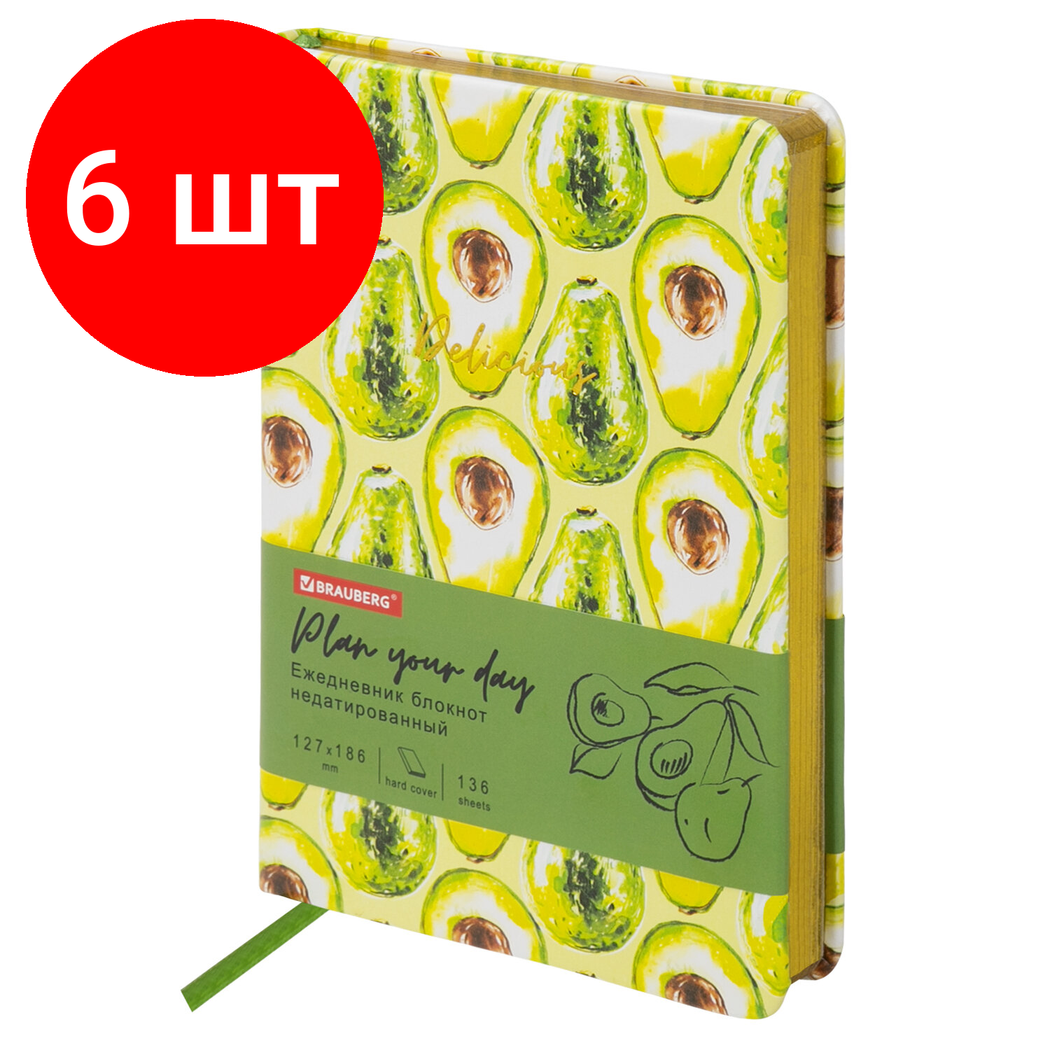 Комплект 6 шт, Ежедневник недатированный B6 (127х186 мм), BRAUBERG VISTA, под кожу, твердый, 136 л., "Avocado", 112112 информация: