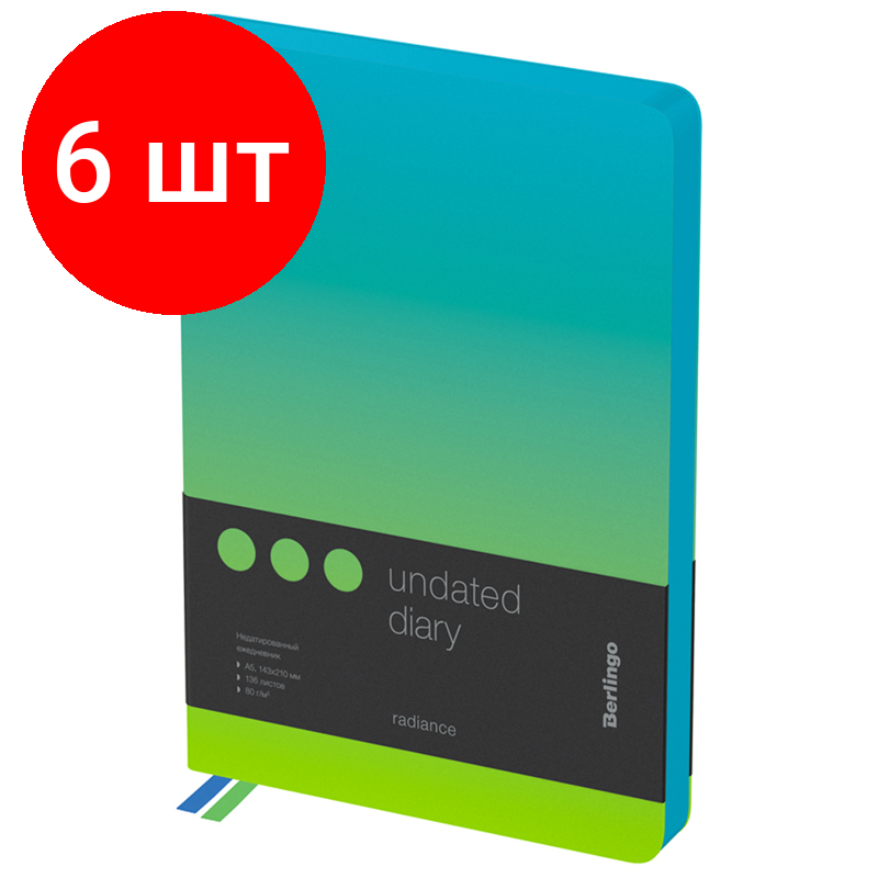 Отзывы на Комплект 6 шт, Ежедневник недатированный, А5, 136л., кожзам, Berlingo "Radiance", голубой/зеленый градиент