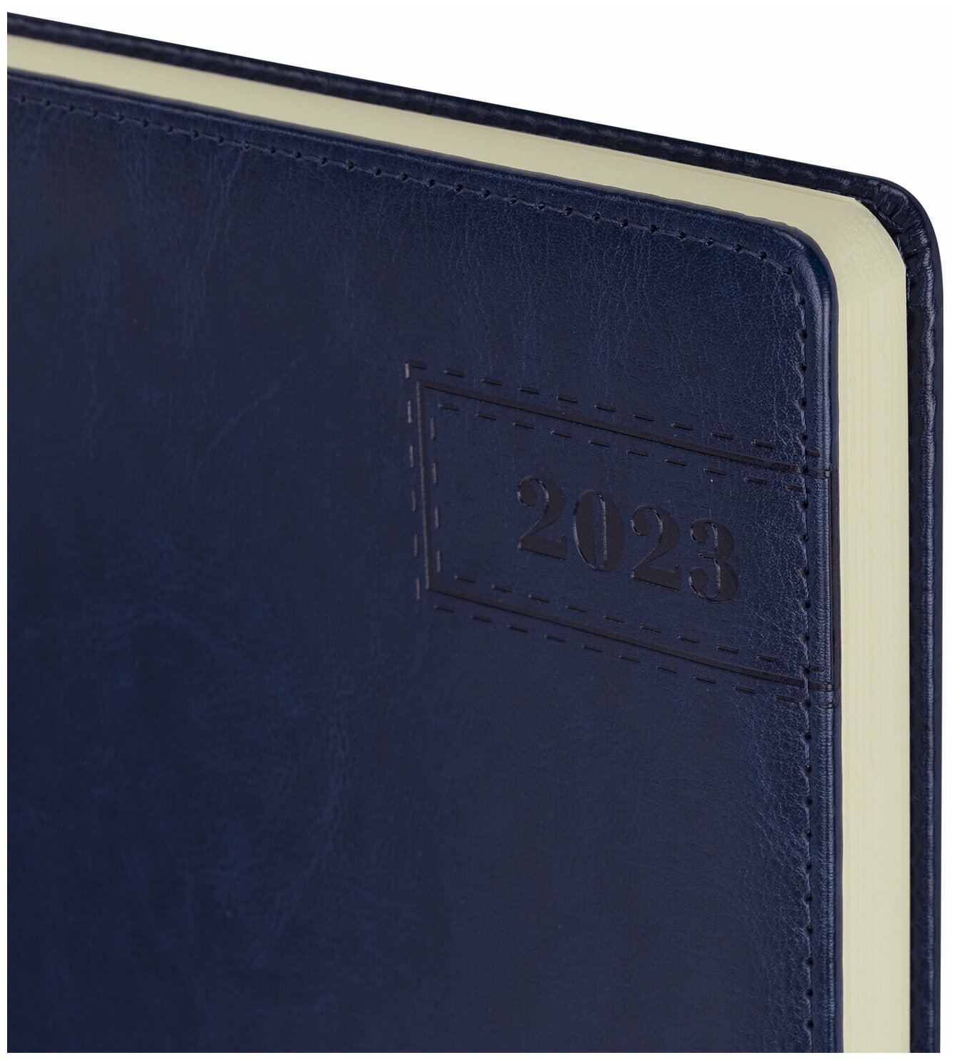 Ежедневник недатированный А5 138х213 мм BRAUBERG "Bond" под кожу, 160 л., темно-синий/синий, 126220