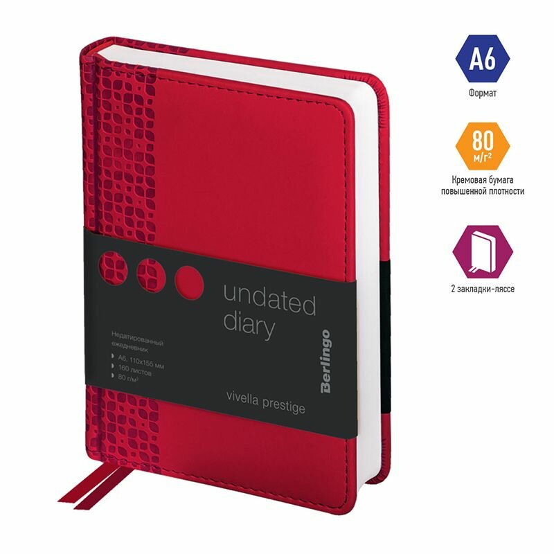 Ежедневник недатированный Berlingo A6, 160 листов, кожзам, "Vivella Prestige", красный (UD0_80606)
