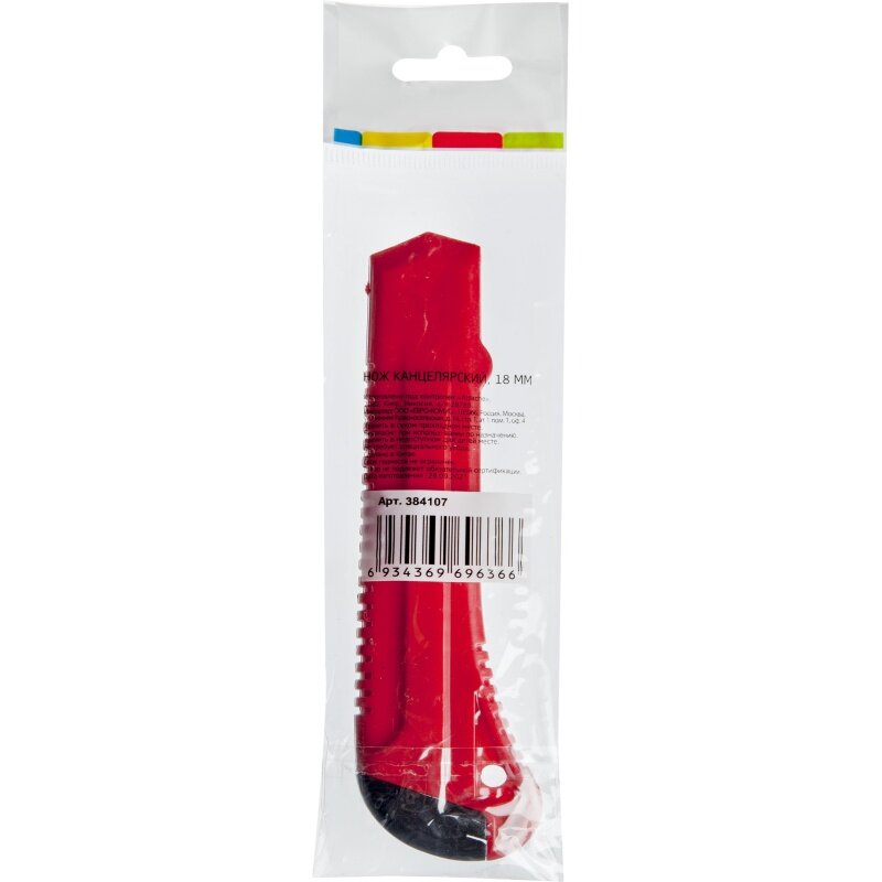 Нож канцелярский Attache лезвие 18 мм, с фиксатором, полибег, красный информация: