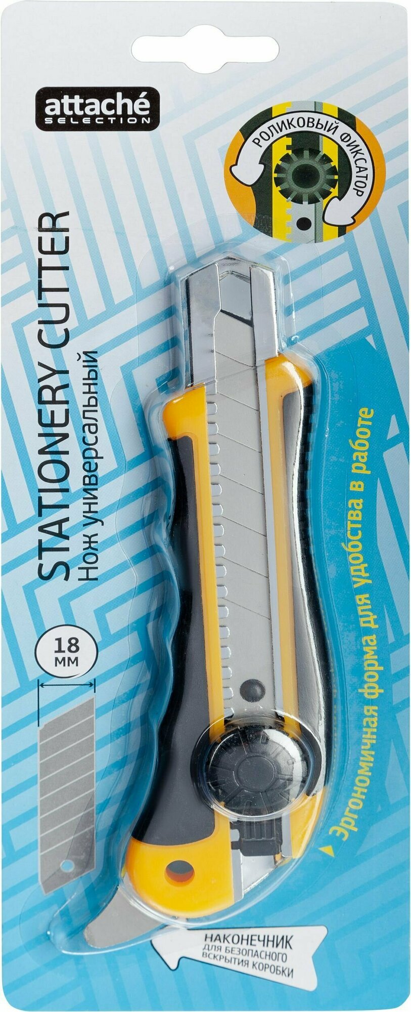 Нож канцелярский 18мм Attache Selection (фиксатор, нескользящие покрытие) желтый